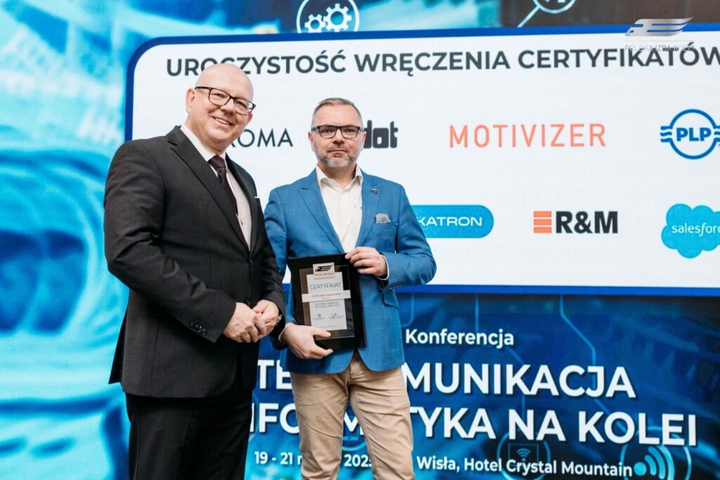 The ceremonial moment of Elproma Electronics admission to the Polish Chamber of Railways. The nomination was presented by General Director Adam Musiał, and Jarosław Budzanowski accepted it on behalf of Elproma.